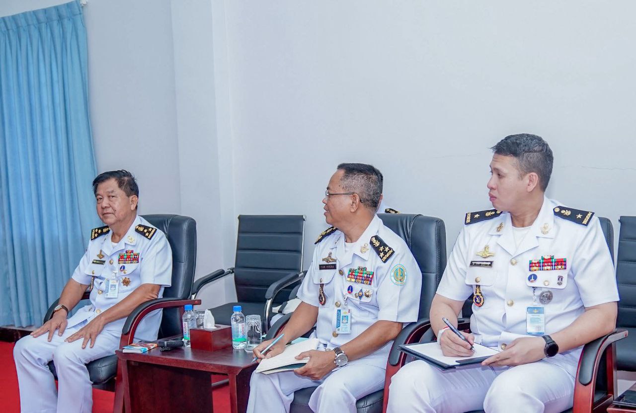 នាថ្ងៃទី១៣តុលានេះ ឧត្តមនាវីឯក ទៀ សុខា មេបញ្ជាការ កងទ័ពជើងទឹក អនុប្រធានប្រចាំការ និងជាអគ្គលេខាធិការ នៃគណៈកម្មាធិការជាតិសន្តិសុខលម្ហសមុទ្រ ទទួលជួបសម្តែងការគួរសម ជាមួយគណៈប្រតិភូមេបញ្ជាការកងនាវា កងទ័ពជើងទឹកចិន ដឹកនាំដោយលោកវរនាវីឯក XU JIANGUO នាយករងសាលាបណ្ឌិត្យសភាកងទ័ពជើងទឹក Dalian PLAN និងជាមេបញ្ជាការនាវាហ្វឹកហ្វឺន Flotilla នៅបញ្ជាការដ្ឋានកងទ័ពជើងទឹក ៕