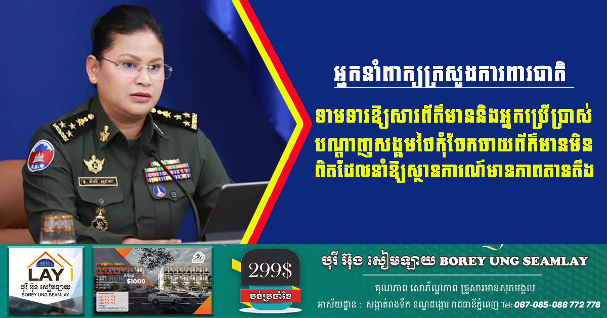 អ្នកនាំពាក្យក្រសួងការពារជាតិ ទាមទារឱ្យសារព័ត៌មាន និងអ្នកប្រើប្រាស់បណ្តាញសង្គមថៃ កុំចែកចាយព័ត៌មានមិនពិត ដែលនាំឱ្យស្ថានការណ៍មានភាពតានតឹង