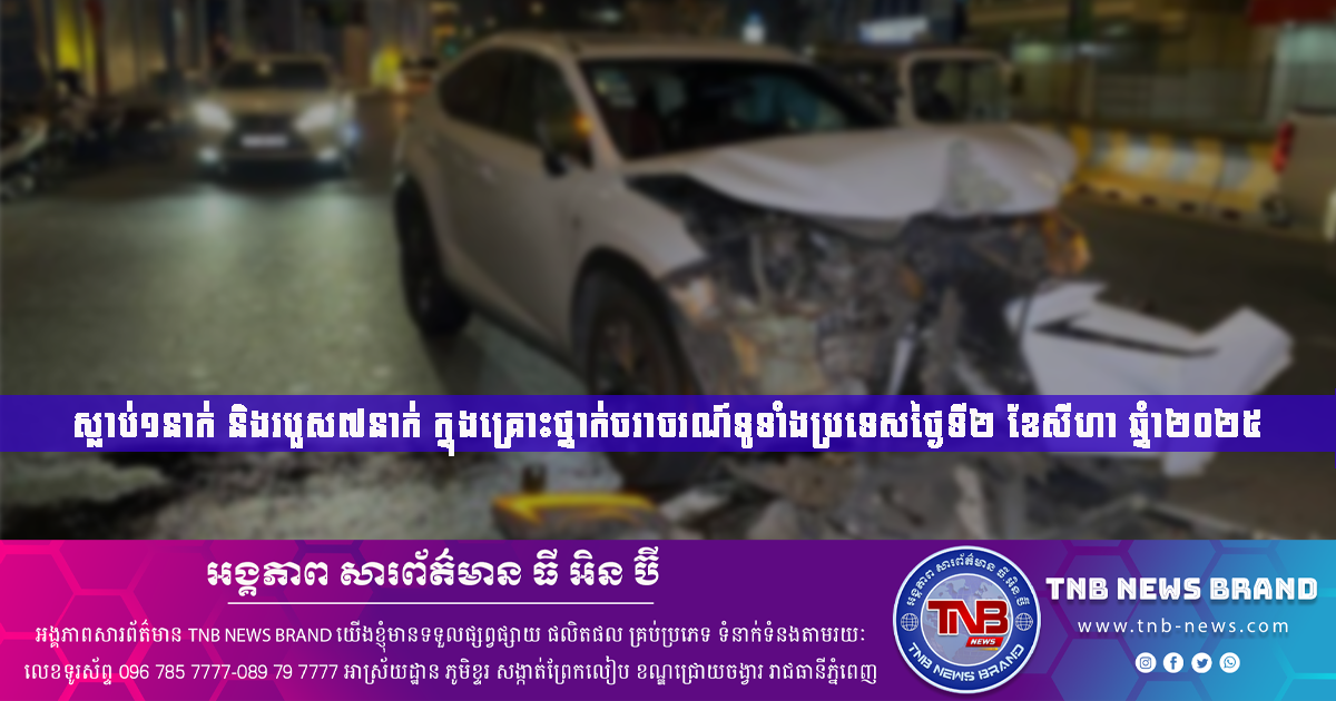ស្លាប់១នាក់ និងរបួស៧នាក់ ក្នុងគ្រោះថ្នាក់ចរាចរណ៍ទូទាំងប្រទេសថ្ងៃទី២ ខែសីហា ឆ្នំា២០២៥