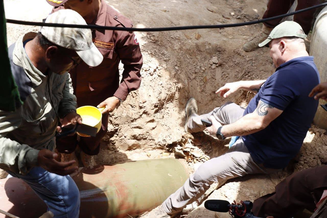 H.E. Heng Ratana, Director General of CMAC: Today Monday 4th August 2025, at MK-84 bomb site in Tmordaun Village, Kokmoun Commune, Banteay Ampil District, Oddor Mean Chey Province, the bomb expert teams from CMAC, the Golden West and NPA (Norwegian People’s Aid) have visited and assessed MK-84 bomb.