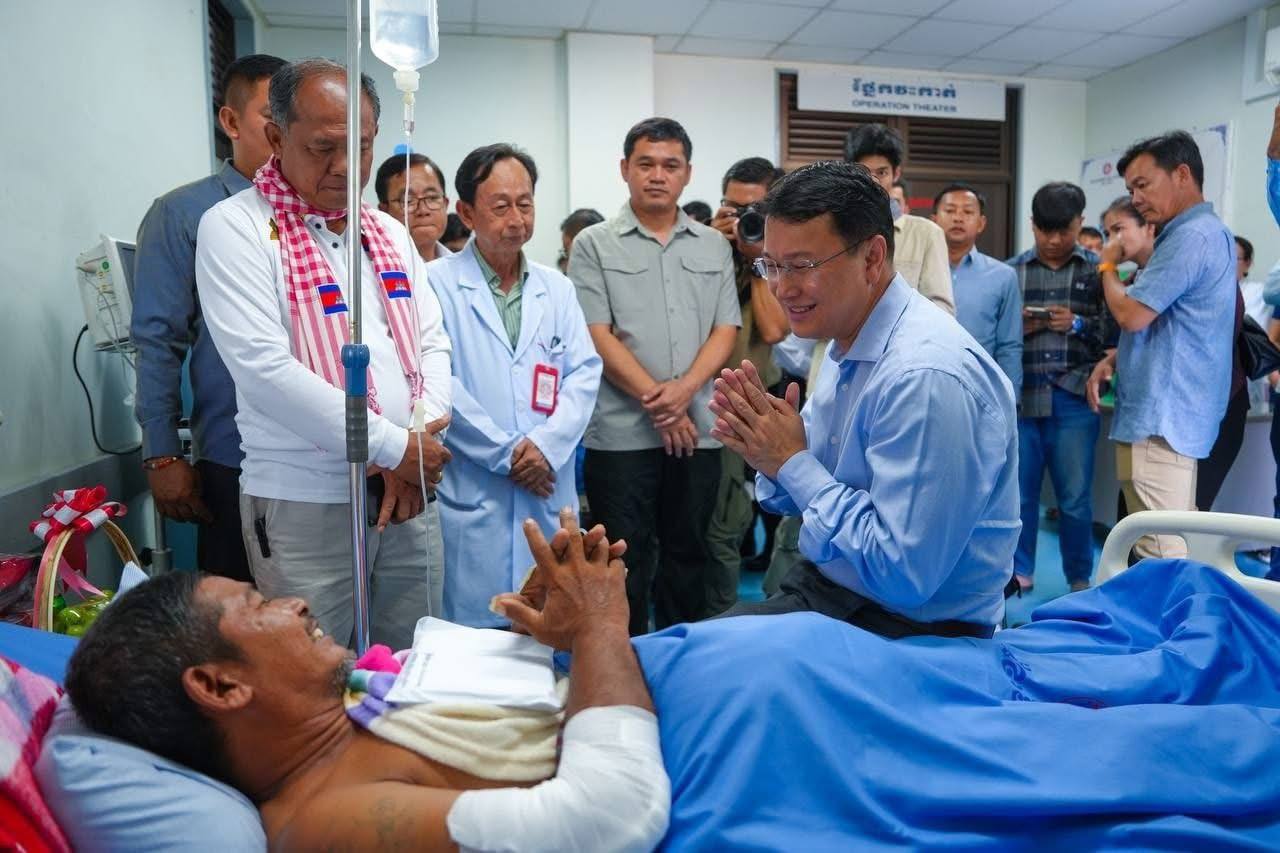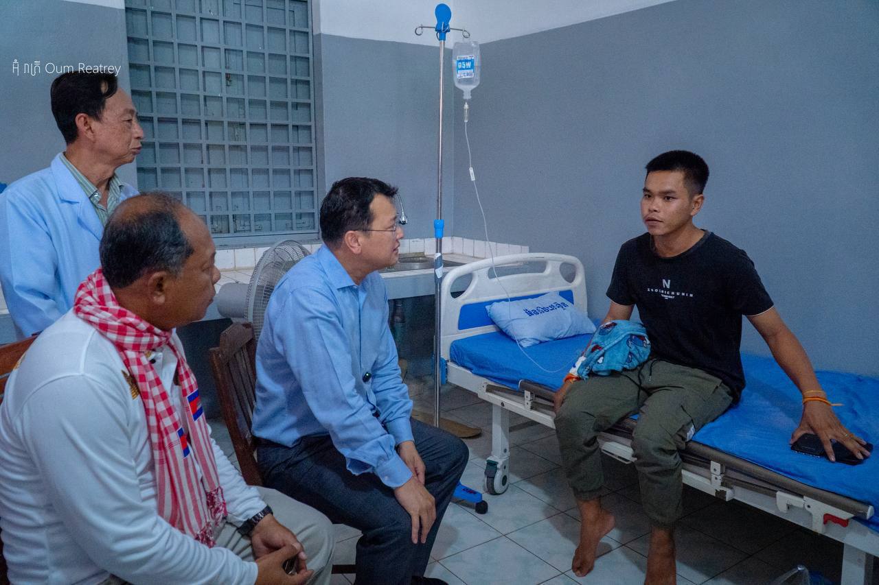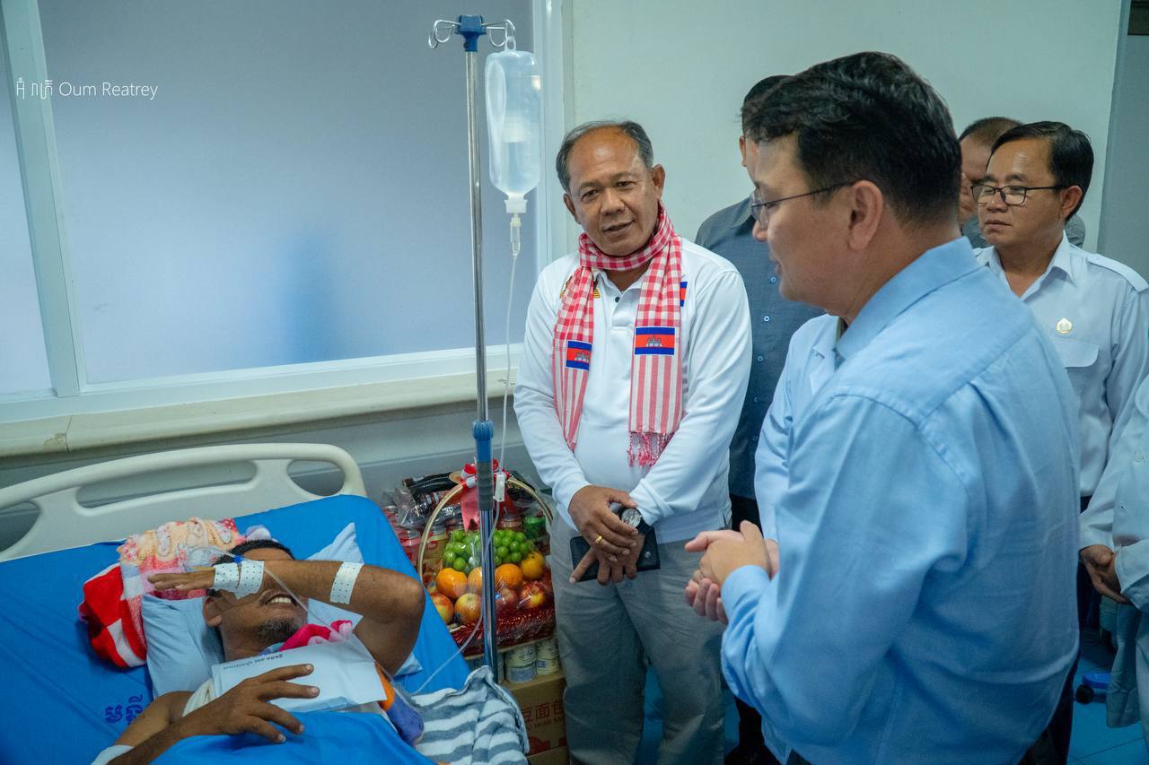 ឯកឧត្តមរដ្ឋមន្ត្រី បានពាំនាំការផ្តាំផ្ញើសួរសុខទុក្ខ និងជំនួយឧបត្ថម្ភរបស់សម្ដេចមហាបវរធិបតី ហ៊ុន ម៉ាណែត នាយករដ្ឋមន្ត្រីនៃព្រះរាជាណាចក្រកម្ពុជា និងលោកជំទាវបណ្ឌិត ពេជ ចន្ទមុន្នី ហ៊ុនម៉ាណែត ជូនវីរកងទ័ពរងរបួសទាំងពីររូប។