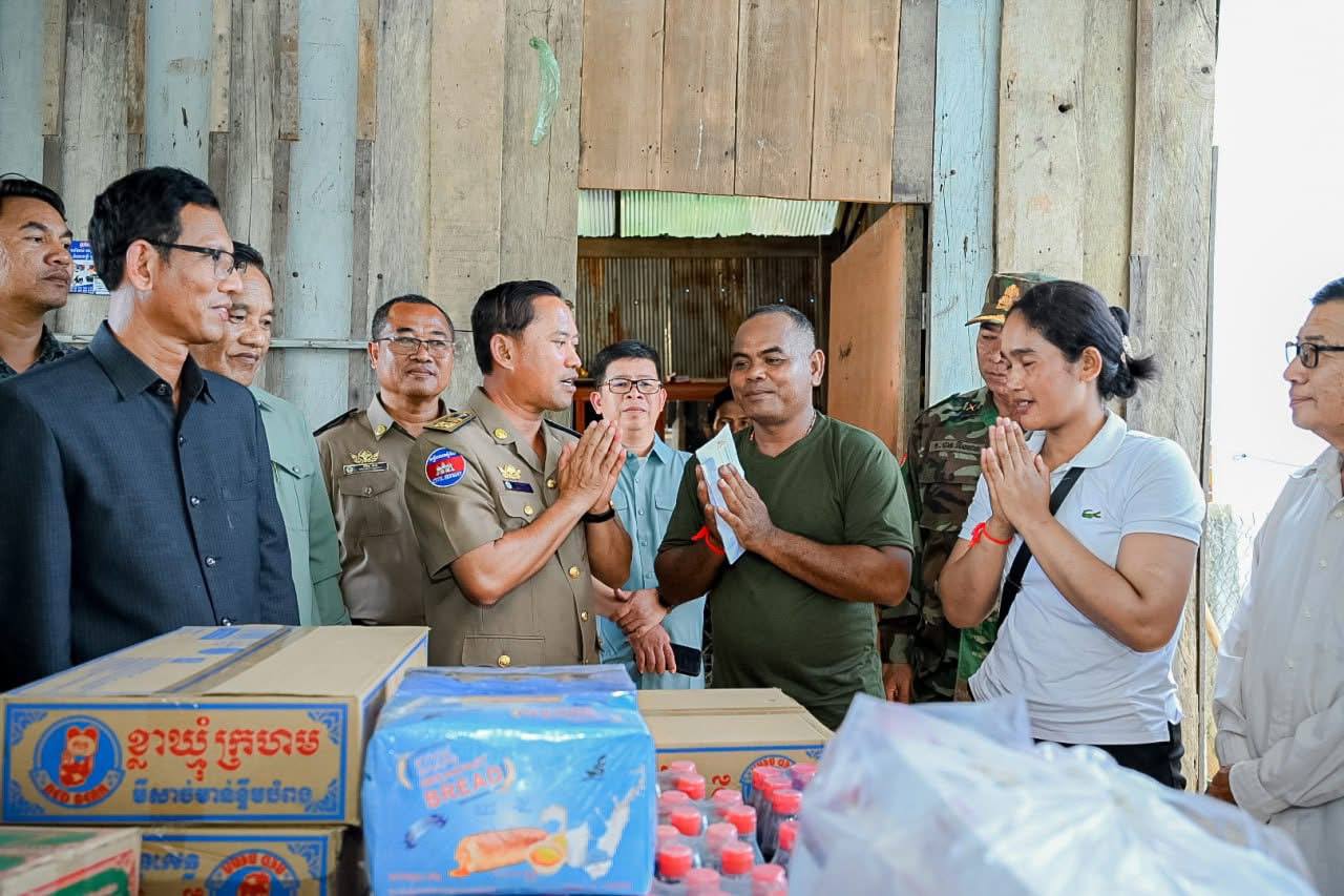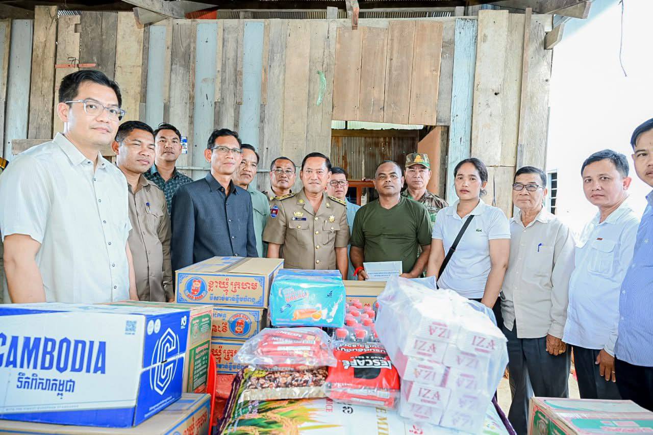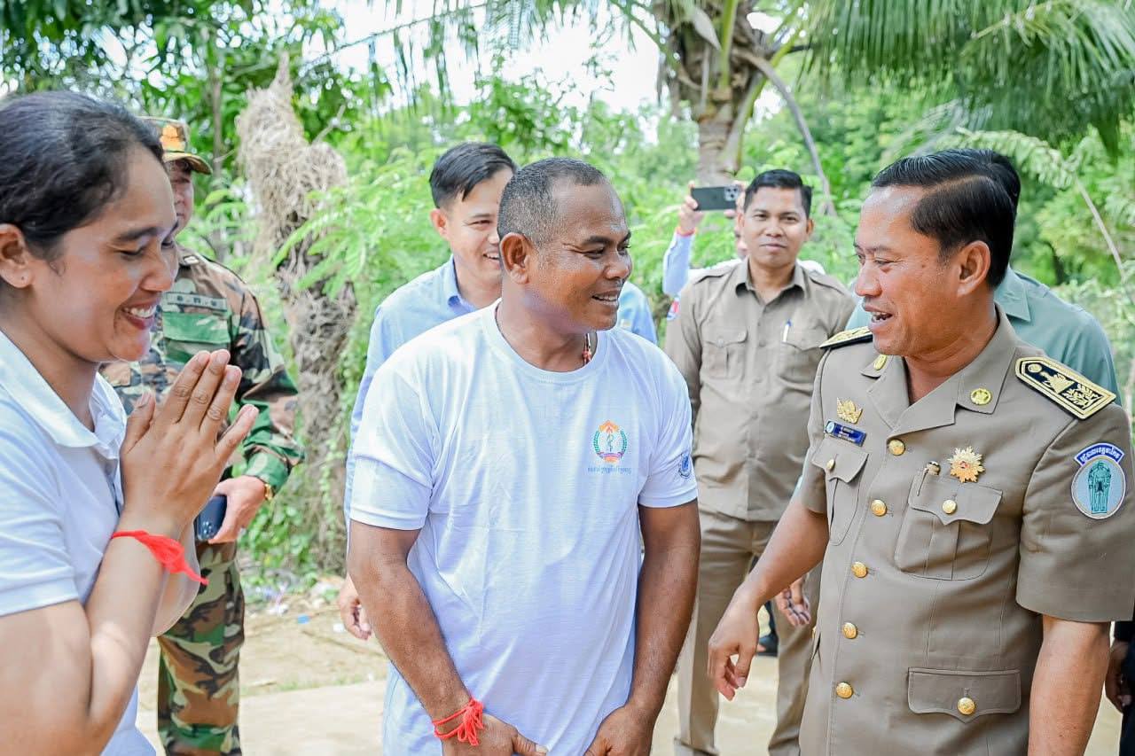តាកែវ៖ អភិបាលខេត្តតាកែវ ឯកឧត្តម វ៉ី សំណាង នៅរសៀលថ្ងៃ អង្គារ៍ ទី០៥ ខែសីហា ឆ្នាំ២០២៥ នេះបានចុះជួបសួរសុខទុក្ខ និងបាននាំយកអំណោយគ្រឿងឧបភោគបរិភោគមួយចំនួន ជូន វីរៈកងទ័ព ម៉ៅ ណុល រហ័សនាម (រ៉ាំប៉ូស្រុកខ្មែរ) ដែលរស់នៅភូមិត្រពាំងឬស្សី ឃុំសូភី ស្រុកបាទី ខេត្តតាកែវ ដែលបង្ហាញភាពអង់អាចក្លាហាន តាមរយៈការដោះអាវបាញ់កាំភ្លើង ធ្វើការប្រយុទ្ធតបត ដោយមិនខ្លាចញញើត ជាមួយក្រុមទាហ៊ានថៃ ដែលមាន មហិច្ចតាចង់រំលោភឈ្លានពាន ដែនអធិបតេយ្យភាពបូរណភាព ទឹកដីខ្មែរ។