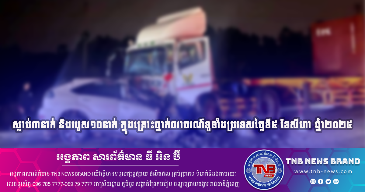 ស្លាប់៣នាក់ និងរបួស១០នាក់ ក្នុងគ្រោះថ្នាក់ចរាចរណ៍ទូទាំងប្រទេសថ្ងៃទី៥ ខែសីហា ឆ្នំា២០២៥