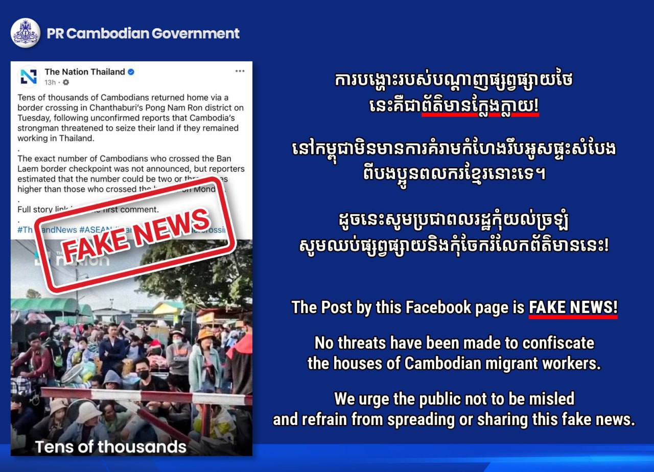 ការបង្ហោះរបស់បណ្ដាញផ្សព្វផ្សាយថៃនេះគឺជាព័ត៌មានក្លែងក្លាយ!