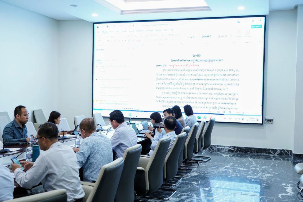 ឯកឧត្ដម ថេង ច័ន្ទសង្វារ រដ្ឋលេខាធិការ និងជាប្រធានក្រុមការងារច្បាប់ បានអញ្ជើញដឹកនាំកិច្ចប្រជុំពិនិត្យ និងពិភាក្សាលើសេចក្តីព្រាងប្រកាសស្តីពី បែបបទ និងបរិបថនៃការផ្តល់ ការព្យួរ និងការដកហូតវិញ្ញាបនបត្រប្រើប្រាស់សំណង់ ដោយរដ្ឋមន្រ្តីក្រសួងរៀបចំដែនដី នគរូបនីយកម្ម និងសំណង់។