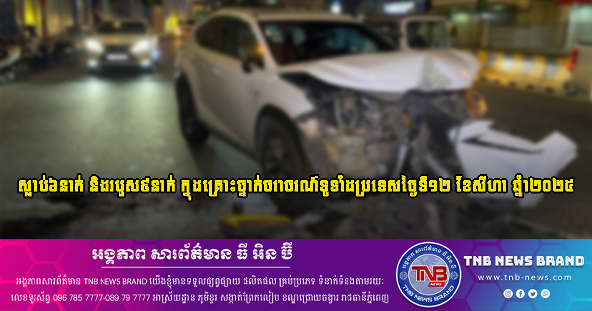 ស្លាប់៦នាក់ និងរបួស៩នាក់ ក្នុងគ្រោះថ្នាក់ចរាចរណ៍ទូទាំងប្រទេសថ្ងៃទី១២ ខែសីហា ឆ្នំា២០២៥