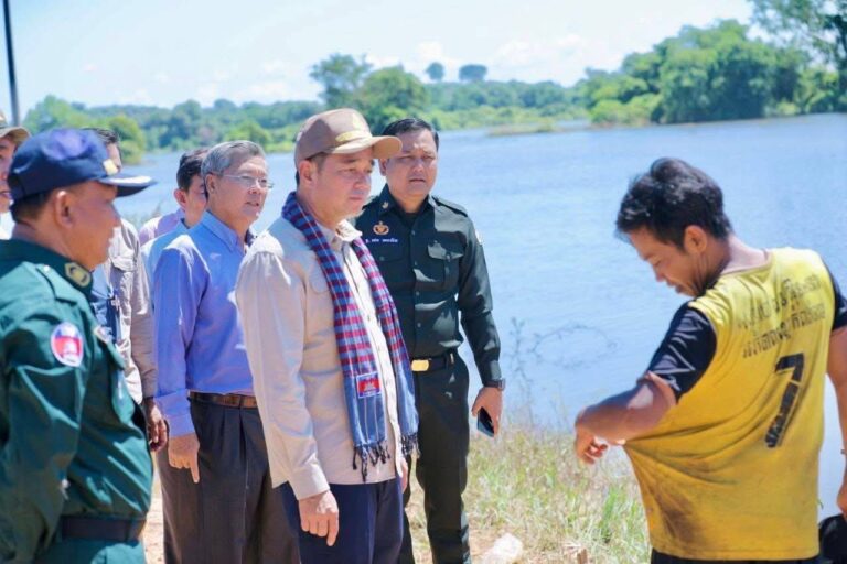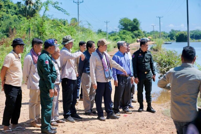 អភិបាលខេត្តកំពង់ចាម ចុះពិនិត្យស្ថានភាពផ្លូវលំខូចខាតដោយទឹកហូរច្រោះ ដែលគ្រោងស្ថាបនាទៅជាទំនប់បង្ហៀរ