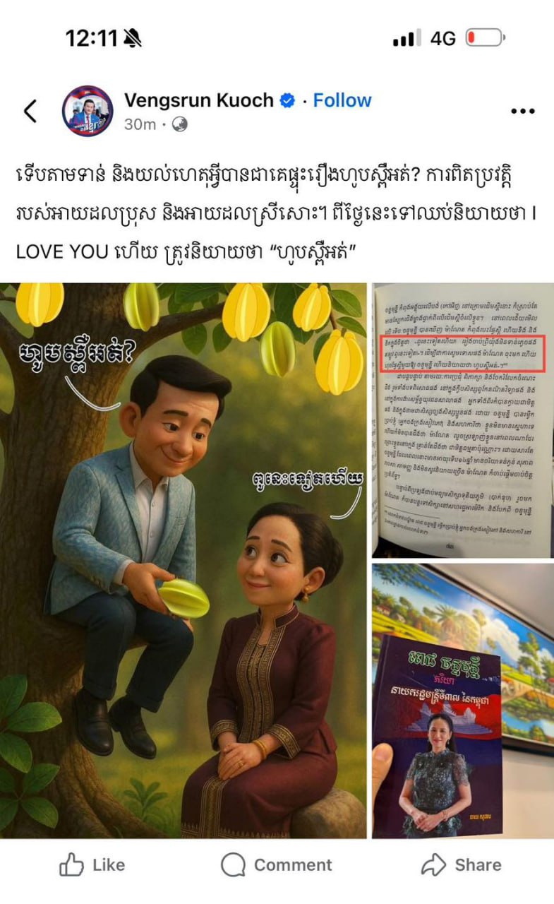 (ភ្នំពេញ)៖ សម្តេចតេជោ ហ៊ុន សែន ប្រធានព្រឹទ្ធសភាបានបង្ហាញសំណេរនៅលើបណ្តាញសង្គមនាថ្ងៃទី១៤ ខែសីហា ឆ្នាំ២០២៥នេះអំពី ប៉ុន្មានថ្ងៃមកនេះផ្ទុះរឿងផ្លែស្ពឺ, សម្តេចស្រាវជ្រាវទើបដឹងអំពីរឿងស្ពឺនេះ។