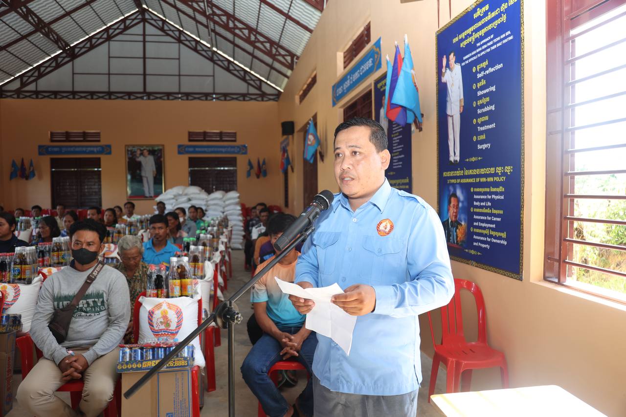 នៅក្នុងឧកាសនោះដែរ ឯកឧត្តមបណ្ឌិតក៏បាននាំយកអំណោយមកចែកជូនបងប្អូនពលករទាំង៤៣ គ្រួសារ ដោយក្នុងមួយគ្រួសារ ទទួលបានអង្ករ ១បាវ, ទឹកស៊ីអ៉ីវ១យួរ,ទឹកត្រី ១យួរ,មីខ្លាឃ្មុំ ១កេស ,ភេសជ្ជៈGreet ១កេស , សារ៉ុង ១,ថ្នាំប៉ារ៉ា ២បន្ទះ និង ថវិកាមួយចំនួន ។