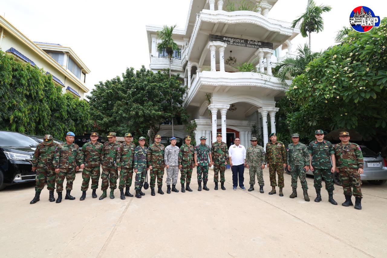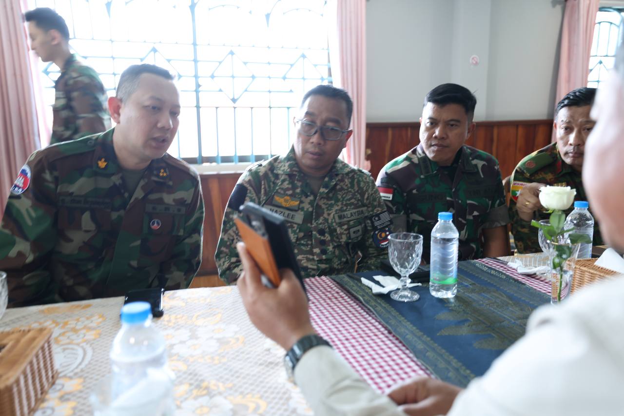 ក្រុមអ្នកសង្កេតការណ៍អន្តរកាល (IOT) ចំនួន ៧ប្រទេស ដឹកនាំដោយអនុព័ន្ធយោធាម៉ាឡេស៊ី ប្រចាំកម្ពុជា និងមានអនុព័ន្ធយោធាប្រទេសផ្សេងទៀត ដែលមាននិវេសន្នដ្ឋានក្នុង និងក្រៅប្រទេសកម្ពុជា ចូលរួម (ព្រុយណេ ឥណ្ឌូនេស៊ី ឡាវ មីយ៉ាន់ម៉ា ហ្វីលីពីន និងវៀតណាម) នៅព្រឹកទី១៤ ខែសីហា ឆ្នាំ២០២៥ បានអញ្ជើញត្រួតពិនិត្យទីតាំងមួយចំនួន សម្រាប់ក្រុមអ្នកសង្កេតការណ៍អាស៊ាន (AOT) ដែលត្រូវដាក់ទីស្នាក់ការនៅ ក្រុងសិរីសោភ័ណ ខេត្តបន្ទាយមានជ័យ នាថ្ងៃទី១៤ ខែសីហា ឆ្នាំ២០២៥។