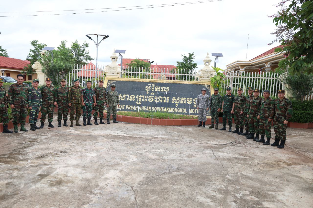 (ព្រះវិហារ)៖ នៅព្រឹកសុក្រ ទី១៥ ខែសីហា ឆ្នាំ២០២៥ ក្រុមអ្នកសង្កេតការណ៍អន្តរកាល (IOT) ចំនួន៧ប្រទេស ដឹកនាំដោយអនុព័ន្ធយោធាម៉ាឡេស៊ី ប្រចាំកម្ពុជា និងមានអនុព័ន្ធយោធាប្រទេសផ្សេងៗទៀត ដែលមាននិវេសនដ្ឋានក្នុង និងក្រៅប្រទេសកម្ពុជា ចូលរួម (ព្រុយណេ ឥណ្ឌូនេស៊ី ឡាវ មីយ៉ាន់ម៉ា ហ្វីលីពីន និងវៀតណាម) បន្តបានអញ្ជើញចុះត្រួតពិនិត្យទីតាំងមួយចំនួន សម្រាប់ក្រុមអ្នកសង្កេតការណ៍អាស៊ាន (AOT) ដែលត្រូវដាក់ទីស្នាក់ការនៅក្នុងទីរួមខេត្តព្រះវិហារ នៅពេលអនាគត។