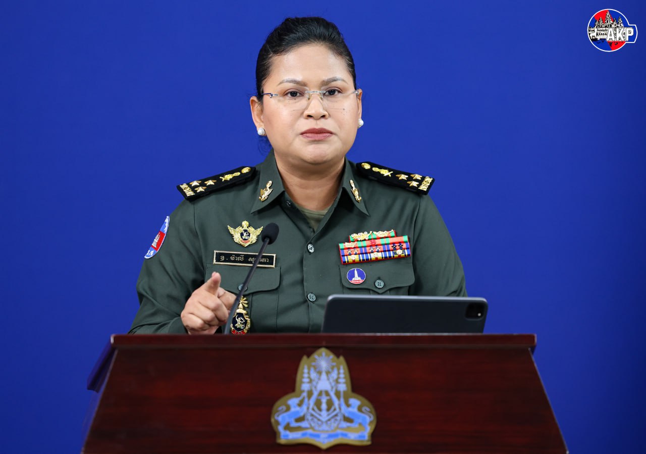 អ្នកនាំពាក្យក្រសួងការពារជាតិកម្ពុជា៖ គិតត្រឹមព្រឹកថ្ងៃទី១៧ ខែសីហានេះ ស្ថានភាពនៅតាមបន្ទាត់ព្រំដែនក្នុងខេត្តព្រះវិហារ ឧត្តរមានជ័យ និងខេត្តបន្ទាយមានជ័យ បន្តមានភាពស្ងប់ស្ងាត់ ខណៈកងទ័ពកម្ពុជាបន្តឈរជើងយ៉ាងរឹងមាំ ដើម្បីការពារបូរណភាពទឹកដីកម្ពុជា និងអនុវត្តយ៉ាងខ្ជាប់ខ្ជាប់នូវកិច្ចព្រមព្រៀងបទឈប់បាញ់ ៕