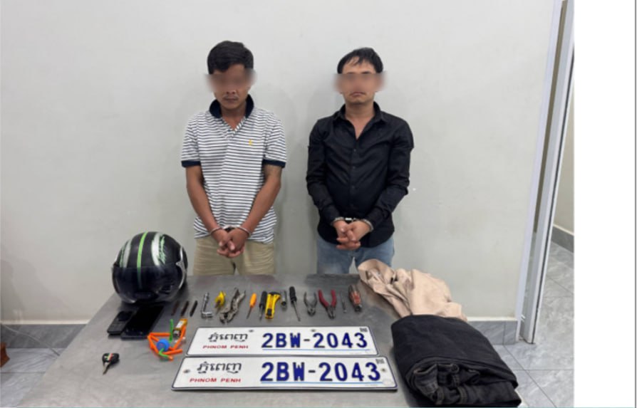 សមត្ថកិច្ចស្រាវជ្រាវឃាត់ខ្លួនជនសង្ស័យលួចម៉ូតូ និងស្លាកលេខរថយន្តយ៉ាងសកម្ម ០២នាក់