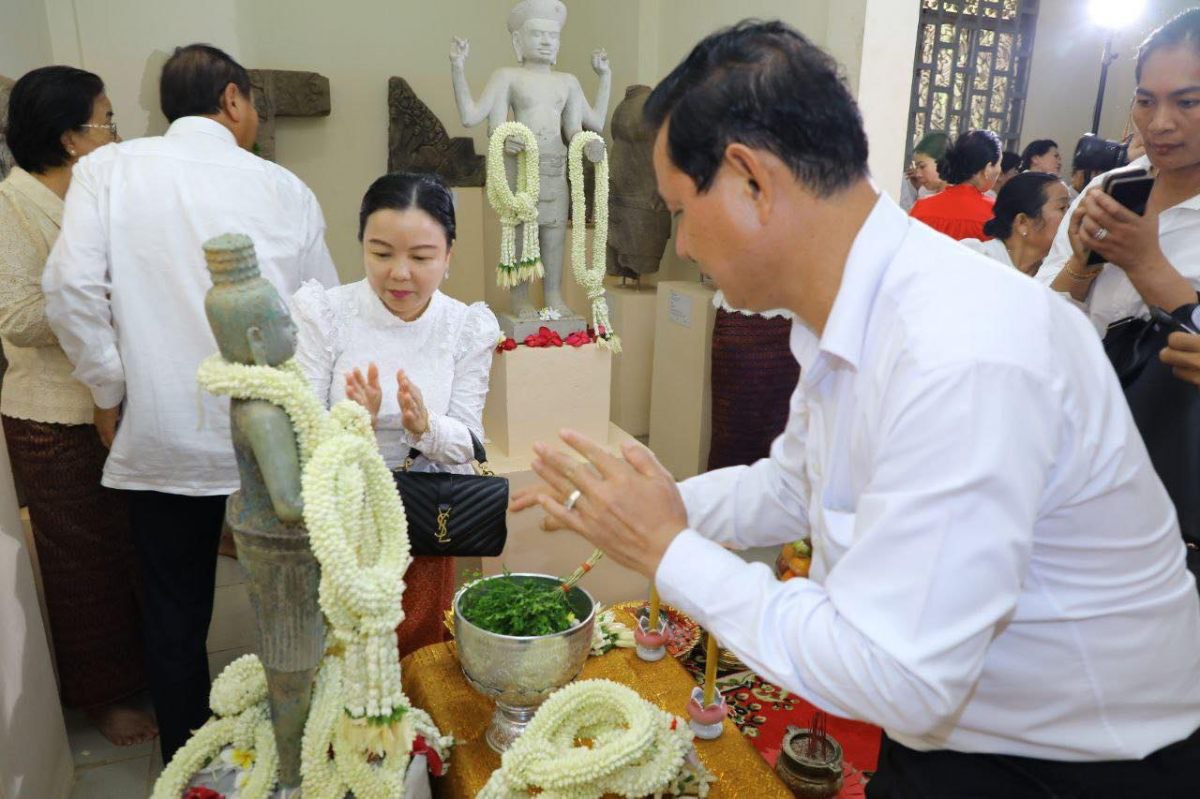សម្ដេច ម៉ែន សំអន អញ្ជើញចូលថ្វាយបង្គំ ថ្វាយភួងផ្កា ថ្វាយរបាំ ដល់ព្រះប្រតិមាទើបប្រទះឃើញ នៅសារមន្ទីរខេត្តកំពង់ធំ
