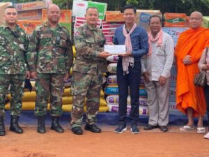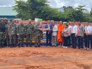 ស្វាយរៀង ៖ គ្រឿងឧបភោគបរិភោគ សម្ភារប្រើប្រាស់ និងថវិកា ដែលប្រមូលបានពីសប្បុរសជន ក្នុង និងក្រៅខេត្ត ត្រូវបានរដ្ឋ បាលក្រុងស្វាយរៀង ដឹកនាំដោយលោក យូ ប៊ុន្នី ប្រធានក្រុមប្រឹក្សាក្រុង និងលោក ណុប ចំរើន អភិបាលក្រុង នាំយកទៅ ផ្តល់ជូនដល់វីរកងទ័ពនៅសមរភូមិជួរមុខ និងជនភៀសសឹក កាលពីថ្ងៃចុងសប្តាហ៍មុននេះ ។