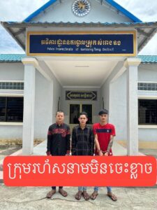 [១]-ឈ្មោះ អ៉ឺន សុភី ហៅក្រូច ភេទប្រុស អាយុ ២២ឆ្នាំ កាន់មួកកូប សុវត្ថិភាព [២]-ឈ្មោះ ណេន សុវណ្ណារី ហៅរី ភេទប្រុស អាយុ ១៩ឆ្នាំ អ្នកកាន់ដុំថ្ម [៣]-ឈ្មោះ ឃ្លោក គង់ ហៅញ៉ាញ់ ភេទប្រុស អាយុ ២៦ឆ្នាំ អ្នករេីសយកដុំថ្មគប់ ភាគីម្ខាងទៀត[១]-ឈ្មោះ ភឿន ភាស់ ភេទប្រុស អាយុ ២២ឆ្នាំ កាន់កាំបិតបុ័ងតោ [២]-ឈ្មោះ ភឿន ភ័ក្រ្ត ភេទប្រុស អាយុ ២០ឆ្នាំ កាន់មួកសុវត្ថិភាព [៣]-ឈ្មោះ ភឿន សុភា ភេទប្រុស អាយុ ១៨ឆ្នាំ កាន់មួកកូបសុវត្ថិភាព។