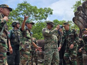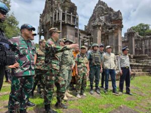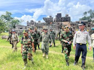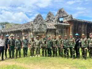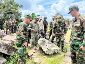 ក្រុមអ្នកសង្កេតការណ៍អន្តរកាល (IOT) ដែលមានតំណាងមកពីប្រទេសចំនួន ៥ ដឹកនាំដោយ លោកវរសេនីយ៍ឯក NAZLEE BIN ABDUL RAHIM អនុព័ន្ធយោធាម៉ាឡេស៊ី ប្រចាំកម្ពុជា អញ្ជើញពិនិត្យតំបន់ជុំវិញប្រាសាទព្រះវិហារ នាថ្ងៃទី២០ ខែសីហា ឆ្នាំ២០២៥ ដើម្បីសង្កេតការណ៍ ផ្ទៀងផ្ទាត់ និងរាយការណ៍អំពីស្ថានភាពក្រោយបទឈប់បាញ់ ក្រោមការសម្របសម្រួលក្រសួងការពារជាតិ នៃព្រះរាជាណាចក្រកម្ពុជា។