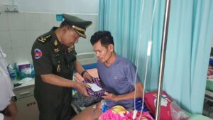 នាយឧត្តមសេនីយ៍ ខឹម សោភ័ណ នាំថវិការបស់សប្បុរសជនខ្មែររស់នៅទីក្រុងឡុងប៉ិច រដ្ឋកាលីហ្វ័រនីញ៉ា និងក្រុមការងារប្រឹក្សាភិបាលស៊ីម៉ាក់ ប្រគល់ជូនវីរកងទ័ព ដែលកំពុងព្យាបាលរបួសនៅក្នុងមន្ទីរពេទ្យ