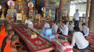 ឱកាសនោះក្រុមការងារគណបក្សចុះជួយមូលដ្ឋានឃុំកណ្ដឹង រួមទាំងពុទ្ធបរិស័ទ្ធបាននាំយកនូវសម្ភារៈ ដូចជា ទៀនវស្សា ០៤គូ អង្ករ ០៩បាវស្មើ និង ៤៥០គីឡូក្រាម មី ២០កេស ទឹកត្រី ៣០យួរ ទឹកស៊ីអ៊ីវ ៣០យួរ ទឹកក្រូច ទឹកភេសជ្ជៈ ២០កេស ស្ករស ៣០ គីឡូក្រាម អំបិល ២០គីឡូក្រាម ទឹកសុទ្ធ ២០កេស ត្រីខកំប៉ុង ២០យួរ និងបច្ច័យប្រគេន ៤វត្ត សរុបជាថវិកា ៧,៩៨៨,២០០រៀល។