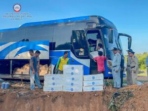 ខេត្តកំពង់ធំ៖ កម្លាំងសមត្ថកិច្ចជំនាញ ក.ប.ប នៃក្រសួងពាណិជ្ជកម្ម បានចុះស្រាវជ្រាវបង្រ្កាបទំនិញចម្រុះខូចគុណភាពដែលឈ្មួញនាំចូលខុសច្បាប់ ពីប្រទេសជិតខាង គឺដើម្បីធានាការពារនូវសុខុមាលភាពជូនអ្នកប្រើប្រាស់ ទប់ស្កាត់ផលិតផលិតទំនិញមិនសមស្រប ពិសេសផលិតផលម្ហូបអាហារដែលមិនអនុលោមតាមលក្ខខ័ណ្ឌតម្រូវផ្នែកបច្ចេកទេស ឬមានកត្តាជាគ្រោះណាមួយ ធ្វើឱ្យប៉ះពាល់សុខភាពអ្នកប្រើប្រាស់ជាយថាហេតុ។