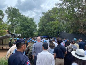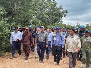 ឯកឧត្តមឧបនាយករដ្ឋមន្រ្តី ប្រាក់ សុខុន រដ្ឋមន្ត្រីក្រសួងការបរទេស និងសហប្រតិបត្តិការអន្តរជាតិ នៅរសៀលថ្ងៃទី២២សីហា ឆ្នំា២០២៥នេះ បានដឹកនាំគណៈប្រតិភូអង្គទូតចំនួន ៣៩ប្រទេស និងអង្គការអន្តរជាតិចំនួន២១ ប្រចាំប្រទេសកម្ពុជា អញ្ជើញពិនិត្យសកម្មភាពទន្ទ្រានកាន់កាប់យកដី ជាឯកតោភាគីរបស់យោធាថៃ តាមរយៈការរាយបន្លាលួស សំណាញ់ រនាំង និងដាក់កងឡាន ស្ថិតនៅភូមិជោគជ័យ និងភូមិព្រៃចាន់ ឃុំអូរបីជាន់ ស្រុកអូរជ្រៅ ខេត្តបន្ទាយមានជ័យ ៕