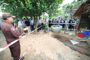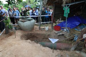 (ឧត្តរមានជ័យ)៖ តំណាងស្ថានទូតបរទេសចំនួន៤២ និងអង្គការអន្តរជាតិចំនួន២០ នៅរសៀលថ្ងៃទី២២ ខែសីហា ឆ្នាំ២០២៥ បានចុះទៅពិនិត្យដោយផ្ទាល់នៅទីតាំងទម្លាក់គ្រាប់បែកនៅវត្តតាមាន់សែនជ័យ និងទីតាំងគ្រាប់បែក MK84 ទម្ងន់មួយតោន ដែលយោធាទ័ពថៃទម្លាក់លើផ្ទះប្រជាពលរដ្ឋ ស្រុកបន្ទាយអំពិល ខេត្តឧត្តរមានជ័យ។