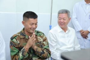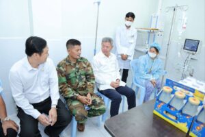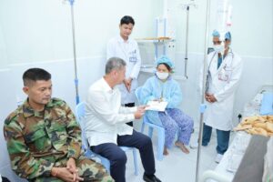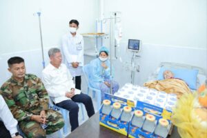 ឯកឧត្ដម គួច ចំរើន អញ្ជើញសួរសុខទុក្ខម្ដាយ វីរកងទ័ពជួរមុខ កំពុងសម្រាកព្យាបាលនៅមន្ទីរពេទ្យតេជោ សែនកោះធំ
