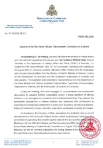 Outcome of the Fifth Senior Officials’ Talks between Cambodia and Australia