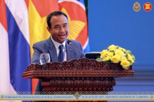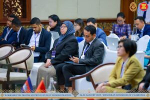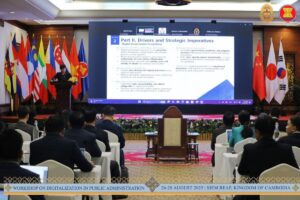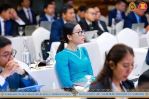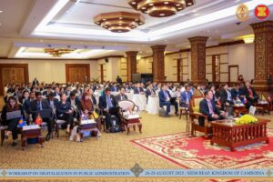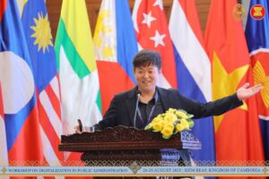 សៀមរាប៖ នាថ្ងៃទី២៦ ខែសីហា ឆ្នាំ២០២៥ ដែលជាថ្ងៃដំបូងនៃសិក្ខាសាលាស្ដីពីឌីជីថលូបនីយកម្មក្នុងរដ្ឋបាលសាធារណៈ លោកសាស្ត្រាចារ្យ Kim Min Han ដែលជាអ្នកជំនាញមកពីសាធារណរដ្ឋកូរ៉េ ក្នុងក្របខ័ណ្ឌអាស៊ានបូកបី បានធ្វើបទបង្ហាញស្ដីពីប្លង់មេនៃការផ្លាស់ប្ដូរឌីជីថល (Digital Transformation Blueprint of AMS countries) ជូនដល់សិក្ខាកាម ជាគណៈប្រតិភូនៃបណ្ដាប្រទេសជាសមាជិកអាស៊ាន និងប្រទេសទីម័រឡេស្តេ លេខាធិការដ្ឋានអាស៊ាន និងមន្ត្រីរាជការតំណាងក្រសួង ស្ថាប័ន នៃព្រះរាជាណាចក្រកម្ពុជា ដែលបានចូលរួមក្នុងសិក្ខាសាលា។