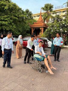 (ភ្នំពេញ)៖ បេក្ខជនត្រូវប្រឡងបាក់ឌុបម្នាក់ បានជួបគ្រោះថ្នាក់ចរាចរណ៍ កាលពីថ្ងៃទី២០ ខែសីហា ឆ្នាំ២០២៥ បានមកដល់មណ្ឌលប្រឡងនៅថ្ងៃទី២៨ ខែសីហា ឆ្នាំ២០២៥នេះ ត្រូវបានអ្នកសង្កេតការណ៍អង្គភាពប្រឆាំងអំពើពុករលួច (អ.ប.ព) និងជំនួយការអប្បមាទ ជួយជូនមកបន្ទប់ប្រទ្បងដាច់ដោយទ្បែក។