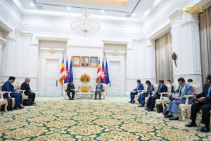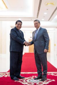 សម្តេចមហាបវរធិបតី ហ៊ុន ម៉ាណែត នាយករដ្ឋមន្ត្រីនៃកម្ពុជា អនុញ្ញាតឱ្យ ឯកឧត្តម U KHIN YI ប្រធានគណបក្សសហភាពសាមគ្គីភាព និងអភិវឌ្ឍន៍មីយ៉ាន់ម៉ា ចូលជួបសម្តែងការគួរសម និងពិភាក្សាការងារ នៅវិមានសន្តិភាពនាព្រឹកថ្ងៃព្រហស្បតិ៍ ទី២៨ សីហា ២០២៥៕