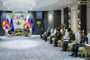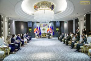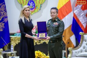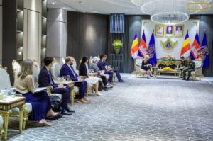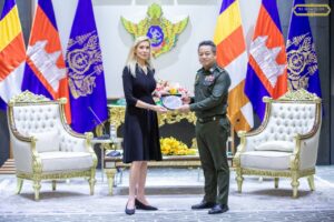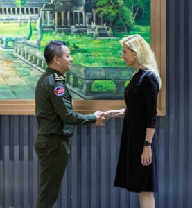 ឯកឧត្តម នាយឧត្តមសេនីយ៍ ទៀ សីហា ឧបនាយករដ្ឋមន្រ្តី រដ្ឋមន្រ្តីក្រសួងការពារជាតិ បានទទួលស្វាគមន៍ លោកជំទាវ Beth Van Duyne ប្រធានគណៈប្រតិភូ និងជាសមាជិកសភាប្រចាំរដ្ឋ តិចសាស់ និងគណៈប្រតិភូសភាសហរដ្ឋអាមេរិក ចូលជួបសម្តែងការគួរសម និងពិភាក្សាការងារ ដែលប្រព្រឹត្តទៅនៅទីស្តីការក្រសួងការពារជាតិ ។