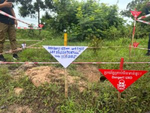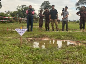 ឯកឧត្តម ហេង រតនា អគ្គនាយកស៊ីម៉ាក់ បានដឹកនាំ និងធ្វើបទបង្ហាញពីប្រភេទគ្រាប់ និងគ្រាប់បែកចង្កោម ដែលថៃបានទម្លាក់មកលើតំបន់ភូមិផ្អុង សង្កាត់កូនក្រៀល ក្រុងសំរោង ខេត្តឧត្តរមានជ័យ អំឡុងផ្ទុះអាវុធកន្លងទៅ ដល់អ្នកសារព័ត៌មានអាស៊ាន៦ប្រទេស និងអ្នកសារព័ត៌មានចិន នៅព្រឹកថ្ងៃទី២៩ ខែសីហា ឆ្នាំ២០២៥។