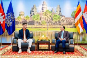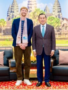 រាជធានីភ្នំពេញ៖ តបតាមការស្នេីសុំរបស់ក្រុមហ៊ុនផលិតស្ប៉តពាណិជ្ជកម្មពីសហរដ្ឋអាមេរិក Jacob Media United States នារសៀលថ្ងៃទី២៩ ខែសីហា ឆ្នាំ២០២៥ ឯកឧត្តម ហួត ហាក់ រដ្ឋមន្ត្រីក្រសួងទេសចរណ៍ បានអនុញ្ញាតជូនតំណាងក្រុមហ៊ុន និងក្រុមការងារថត ចូលជួបសម្តែងការគួរសម ពិភាក្សាការងារអំពីដំណើរការថត និងស្នើសុំអនុសាសន៍ណែនាំដ៏ខ្ពង់ខ្ពស់ពីសំណាក់ឯកឧត្ដមរដ្ឋមន្ត្រី លើការងារថតឃ្លីបវីដេអូផ្សព្វផ្សាយសក្តានុពលទេសចរណ៍របស់ព្រះរាជាណាចក្រកម្ពុជាជូនក្រុមហ៊ុនអាកាសចរណ៍ Etihad Airways នាទីស្តីការក្រសួង។