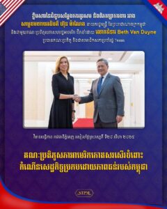 គណៈប្រតិភូសភាសហរដ្ឋអាមេរិក (CODEL) ដឹកនាំដោយលោកស្រី Beth Van Duyne ប្រធានគណៈប្រតិភូ និងជាសមាជិកសភាប្រចាំរដ្ឋ Texas នៅព្រឹកថ្ងៃទី៣០ ខែសីហា ឆ្នាំ២០២៥ បានអញ្ជើញចុះពិនិត្យផ្ទាល់ ពីស្ថានភាពរបស់ជនភៀសសឹកនៅមណ្ឌលសុវត្ថិភាពវត្តពោធិ៍៥០០០ដើម ស្ថិតក្នុងស្រុកគូលែន ដោយទទួលបានការស្វាគមន៍យ៉ាងកក់ក្ដៅពីលោក គីម រិទ្ធី អភិបាលខេត្តព្រះវិហារ។