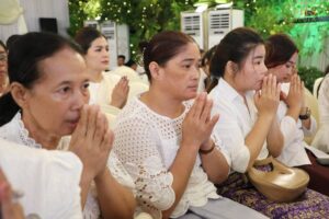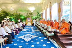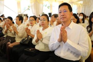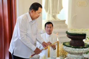 បន្ទាប់ពីស្តាប់ព្រះធម៌ទេសនាសម្តែងដោយសម្តេចព្រះពោធិវង្សកិត្តិបណ្ដិត ណយ ច្រឹក សម្តេចព្រះសង្ឃនាយករងទី១នៃព្រះរាជាណាចក្រកម្ពុជារួចមកសម្តេចអគ្គមហាសេនាបតីតេជោ ប្រមុខរដ្ឋស្តីទីនៃព្រះរាជាណាចក្រកម្ពុជា ឯកឧត្តម លោកជំទាវ លោកអ្នកឧកញ៉ា ជាបុត្រា បុត្រី និង ក្រុមគ្រួសារ បានថ្វាយ ប្រគេន ទេយ្យវត្ថុ គ្រឿង អត្ថបរិក្ខា ចំពោះ សម្តេចព្រះសង្ឃនាយក សម្តេចព្រះសង្ឃនាយករង សម្តេចព្រះមហាថេរ និងព្រះរាជាគណៈគ្រប់ព្រះអង្គ ប្រកបដោយសទ្ធាជ្រះថ្លាដ៍ខ្ពង់ខ្ពស់បំផុត៕