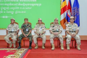 ឧត្តមនាវីឯក ទៀ សុខា មេបញ្ជាការកងទ័ពជើងទឹក អនុប្រធានប្រចាំការ និងជាអគ្គលេខាធិការនៃគណៈកម្មាធិការជាតិសន្តិសុខលម្ហសមុទ្រ នៅថ្ងៃចន្ទ ទី១ ខែកញ្ញា ឆ្នាំ២០២៥ បានអញ្ជើញចុះផ្សព្វផ្សាយសភាពការណ៍ថ្មីៗជូនដល់នាយនាវី នៃកងទ័ពជើងទឹក និងមន្រ្តីអគ្គលេខាធិការដ្ឋាននៃគណៈកម្មាធិការជាតិសន្តិសុខលម្ហសមុទ្រ ស្ថិតនៅខណ្ឌជ្រោយចង្វារ រាជធានីភ្នំពេញ។