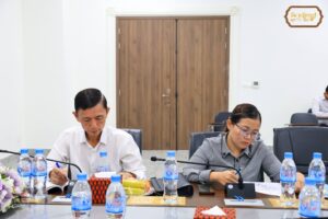 ឯកឧត្តមបណ្ឌិត គឹម សន្តិភាព សមាជិកគណៈកម្មាធិការកណ្តាល និងជាអនុប្រធានគណៈប្រចាំការនៃគណៈអចិន្ត្រៃយ៍យុវជនគណបក្សថ្នាក់កណ្តាលអញ្ជើញដឹកនាំកិច្ចប្រជុំថ្នាក់ដឹកនាំក្រុមការងាររៀបចំតាក់តែងលិខិតបទដ្ឋាននានារបស់យុវជនគណបក្សប្រជាជនកម្ពុជាថ្នាក់កណ្តាល