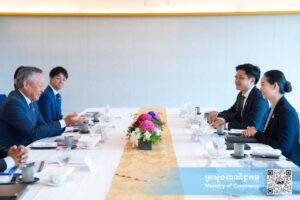 ( អូសាកា) នាថ្ងៃព្រហស្បតិ៍ ទី0៤ ខែកញ្ញា ឆ្នាំ២០២៥ នៅទីក្រុងអូសាកា ប្រទេសជប៉ុន លោកជំទាវ ចម និម្មល រដ្ឋមន្ត្រីក្រសួងពាណិជ្ជកម្ម បានចូលរួមទទួលទានអាហារការងារពេលព្រឹកជាមួយតំណាងក្រុមហ៊ុន Toyota Tsusho Corporation ដែលដឹកនាំដោយលោក Harada Shigeru, Division CEO ក្រុមហ៊ុន Toyota Tsusho Co., LTD (Japan) និងសហការី ព្រមទាំងតំណាងក្រុមហ៊ុន Toyota Tsusho Manufacturing (Cambodia) ដែលមានវត្តមានអញ្ជើញចូលរួមដោយឯកឧត្តមរដ្ឋលេខាធិការអនុរដ្ឋលេខាធិការ និងឯកឧត្តមឯកអគ្គរាជទូតកម្ពុជាប្រចាំប្រទេសជប៉ុន។