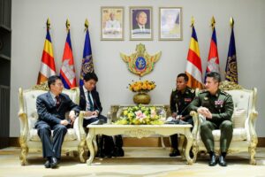 (រាជធានីភ្នំពេញ): ដោយបានការអនុញ្ញាតជាតំណាងដ៏ខ្ពង់ខ្ពស់ ឯកឧត្តម នាយឧត្តមសេនីយ៍ ទៀ សីហា ឧបនាយករដ្ឋមន្ត្រី រដ្ឋមន្ត្រីក្រសួងការពារជាតិ ឯកឧត្តម ឧត្តមសេនីយ៍ឯក រ៉ាត់ ដារ៉ារ័ត្ន រដ្ឋលេខាធិការ ក្រសួងការពារជាតិ បានទទួលជួបសម្តែងការគួរសម និងពិភាក្សាការងារជាមួយ ឯកឧត្តម Deng Xijun បេសកជនពិសេសទទួលបន្ទុកកិច្ចការអាស៊ាន នៃក្រសួងការបរទេស សាធារណរដ្ឋប្រជាមានិតចិន ដែលប្រព្រឹត្តទៅនៅទីស្តីការក្រសួងការពារជាតិ។