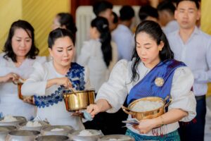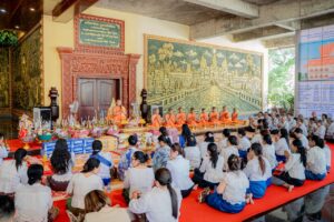 ( ក្រចេះ) លោកជំទាវ ទុយ សិរីរតនៈ នេត្រភក្ត្រា ប្រធានកិត្តិយសសាខាសមាគមនារីកម្ពុជា ដើម្បីសន្តិភាព និងអភិវឌ្ឍន៍ក្រសួងព័ត៌មាន តំណាងដ៏ខ្ពង់ខ្ពស់ ឯកឧត្តម នេត្រ ភក្រ្តា រដ្ឋមន្រ្តីក្រសួងព័ត៌មាន និងជាប្រធានក្រុមការងាររាជរដ្ឋាភិបាលចុះមូលដ្ឋានខេត្តក្រចេះ ព្រមទាំងសមាជិកាកិត្តិយស និងសមាជិកាសមាគមនារីក្រសួងព័ត៌មាន អញ្ជើញរាប់បាត្រ ប្រគេនទេយ្យទាន និងបច្ច័យកសាង ក្នុងពិធីកាន់បិណ្ឌវេនទី៥ នៅវត្តព្រះវិហារធំសសរ១០០ ស្ថិតស្រុកសំបូរ ខេត្តក្រចេះ ដើម្បីឧទ្ទិសកុសលផលបុណ្យជូនជីដូន ជីតា និងញាតិការទាំង ៧សន្តាន តាមទំនៀមទម្លាប់ប្រពៃណីព្រះពុទ្ធសាសនា។