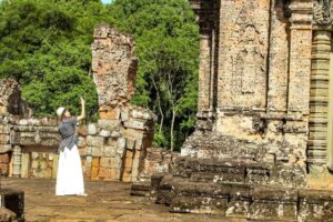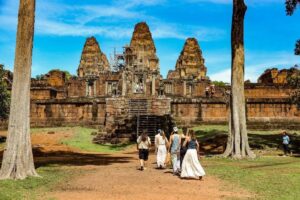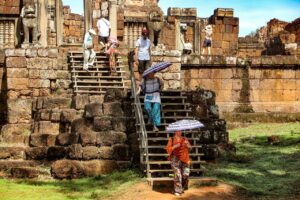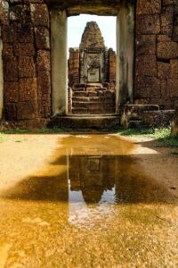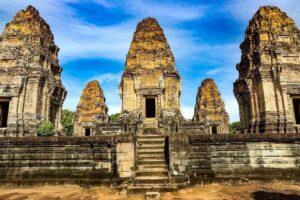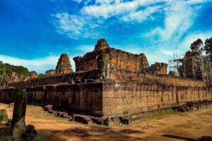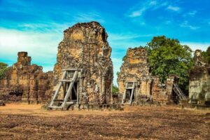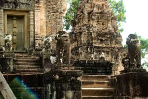 ប្រាសាទមេបុណ្យខាងកើត សំណង់ឥដ្ឋ សង់នៅលើខឿនថ្មបាយក្រៀម និងថ្មភក់។ ក្រៅពីបានទាក់ទាញទេសចរ ប្រាសាទនេះ ក៏ជាទីសក្ការៈ ដែលអ្នកស្រុកនៅជុំវិញប្រាសាទមានជំនឿជាក់ថា ពូកែស័ក្តិសិទ្ធិ។