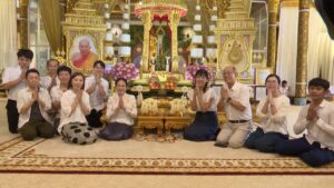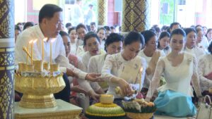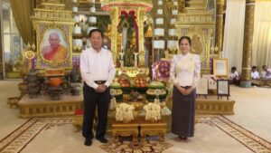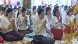 ក្នុងឱកាសអញ្ជើញទៅដល់ឧបដ្ឋានសាលា លោកជំទាវបណ្ឌិត ពេជ ចន្ទមុន្នី ហ៊ុន ម៉ាណែត និងឯកឧត្តម ពេជ សោភ័ណ ដែលត្រូវជាបិតារបស់លោកជំទាវ បានអញ្ជើញអុជទៀនធូប ប្រគេនគន្ធពិដោរ ថ្វាយបង្គំព្រះពុទ្ធបដិមា និងព្រះសង្ឃ ព្រមទាំងសមាទានសីល រម្លឹកដល់គុណបុណ្យព្រះរតនៈត្រៃយ៍តាមគន្លងប្រពៃណី ព្រះពុទ្ធសាសនា ពិសេសរម្លឹកដល់ព្រះសម្មាសម្ពុទ្ធព្រះបរមគ្រូនៃយើង ដែលព្រះអង្គបានត្រាស់ដឹង និងព្រះធម៌វិន័យដ៏វិសេសវិសាល បន្សល់ទុកឱ្យពុទ្ធបរិស័ទគ្រប់ជំនាន់គោរពប្រតិបត្តិ ទំនៀមទំលាប់ ប្រកាន់ភ្ជាប់ ប្រពៃណី ព្រះពុទ្ធសាសនា។