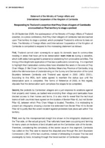 សេចក្តីថ្លែងការណ៍របស់ក្រសួងការបរទេស និង កិច្ចសហប្រតិបត្តិការអន្តរជាតិនៃព្រះរាជាណាចក្រកម្ពុជា ឆ្លើយតបនឹងការអះអាង របស់ថៃ ដែលថាអ្នកភូមិព្រៃចាន់កម្ពុជាបាន ទន្ទ្រានចូលទឹកដីថៃធ្វើការតវ៉ា ៕