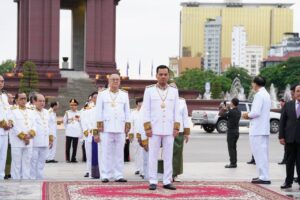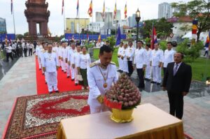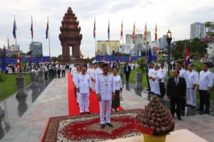 ឯកឧត្តមអភិសន្ដិបណ្ឌិត ស សុខា ឧបនាយករដ្ឋមន្ដ្រី រដ្ឋមន្ត្រីក្រសួងមហាផ្ទៃ ដឹកនាំគណៈប្រតិភូក្រសួងមហាផ្ទៃ អញ្ជើញដាក់ក្រពុំបិណ្ឌផ្កាឈូក គោរពរដ្ឋធម្មនុញ្ញ នៅនីតិបូជនីយដ្ឋានវិមានរដ្ឋធម្មនុញ្ញ នាសួនច្បារខាងលិចវិមានឯករាជ្យ រាជធានីភ្នំពេញ នាព្រឹកថ្ងៃទី២៤ ខែកញ្ញ្ញា ឆ្នាំ២០២៥ ក្នុងឱកាសខួបលើកទី៣២ ទិវាប្រកាសរដ្ឋធម្មនុញ្ញ (២៤ កញ្ញា ១៩៩៣ – ២៤ កញ្ញា ២០២៥)។