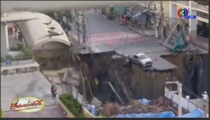 (បាងកក)៖ ការបាក់ផ្លូវដ៏ធំមួយបានកើតឡើងនៅថ្ងៃពុធ ទី២៤ ខែកញ្ញា ដោយបណ្ដាលឱ្យមានរណ្ដៅជម្រៅប្រហែល៥០ម៉ែត្រ នៅទល់មុខនឹងមន្ទីរពេទ្យ Vajira Hospital ក្នុងទីក្រុងបាងកក ប្រទេសថៃ។ នេះបើតាមការចេញផ្សាយដោយសារព័ត៌មាន Khaosod។