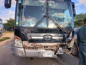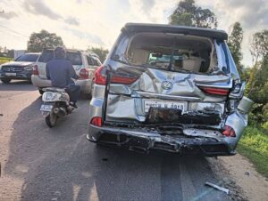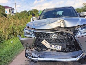 ខេត្តស្វាយរៀង ៖ នៅថ្ងៃទី២៤ ខែកញ្ញា ឆ្នាំ២០២៥ មានករណីគ្រោះថ្នាក់ចរាចរណ៍ រថយន្តបុកបន្តគ្នា ក្នុងនោះមានរថយន្តម៉ាក Lexus Rx 330 ពណ៌ទឹកសមុទ្រ ផ្លាកលេខ ភ្នំពេញ 2AX-6279 ,រថយន្ត Lexus LX570 ពណ៌ប្រផេះ ផ្លាកលេខ កម្ពុជា H.H.0919 , រថយន្ត Hyundai Starex ពណ៌ស ផ្លាកលេខ ភ្នំពេញ 2Z-1922 និងរថយន្ត 45កៅអី Hyundai Univers ពណ៌ប្រាក់ ផ្លាកលេខ ភ្នំពេញ 3D-4999 របស់ក្រុមហ៊ុន ត្រយ៉ងយក្ស ទេសចរណ៍ Giant Ibis Transport ។