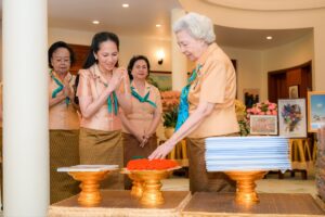 ខ្ញុំម្ចាស់សូមព្រះបរមរាជានុញ្ញាតលើកហត្ថប្រណម្យបួងសួងដល់គុណបុណព្រះរតនត្រ័យ វត្ថុស័ក្តិសិទ្ធិក្នុងលោក ទេវតាថែរក្សាព្រះមហាសេ្វតច្ឆត្រ ជាពិសេសព្រះបារមីនៃដួងវិញ្ញាណក្ខន្ធអតីតព្រះមហាក្សត្រខ្មែរគ្រប់ព្រះអង្គ ព្រមទាំង ព្រះករុណាព្រះបាទសម្តេចព្រះ នរោត្តម សីហនុ “ព្រះបរមរតនកោដ្ឋ” សូមតាមជួយបីបាច់ថែរក្សា ការពារ និងប្រោសប្រទានព្រះរាជសព្ទសាធុការពរ បវរសួស្តី ជ័យមង្គល វិបុលសុខ មហាប្រសើរគ្រប់ប្រការថ្វាយ «សម្តេចព្រះមហាក្សត្រី នរោត្តម មុនិនាថ សីហនុ ព្រះវររាជមាតាជាតិខ្មែរ» សូមទ្រង់ប្រកបដោយព្រះរាជសុខភាពល្អមាំមួន ព្រះកម្លាំងកាយខ្លាំងក្លា ទ្រង់ចៀសចាកឆ្ងាយពីជំងឺយាយីនានា និងសូមទ្រង់ប្រកបដោយពុទ្ធពរទាំង ៤ប្រការគឺ អាយុ វណ្ណៈ សុខៈ ពលៈ កុំបីឃ្លៀងឃ្លាតឡើយ ដើម្បីព្រះអង្គបន្តគង់ជាម្លប់ដ៏ត្រជាក់ត្រជុំដល់មហាគ្រួសារខ្មែរ និងជាព្រះប្រធានកិត្តិយស នៃកាកបាទក្រហមកម្ពុជា ក្រុមប្រឹក្សាជាតិដើម្បីស្ត្រី និងសមាគមកាយឫទ្ធិនារីកម្ពុជា ក្នុងការរួមចំណែកដ៏ធំធេងលើកស្ទួយព្រះពុទ្ធសាសនា វប្បធម៌ប្រពៃណីជាតិ វិស័យអប់រំ សុខុមាលភាពសង្គម និងលើកកម្ពស់ជីវភាពប្រជានុរាស្ត្ររបស់ព្រះអង្គឱ្យមានភាពរីកចម្រើន រុងរឿងជាដរាបតរៀងទៅ។
