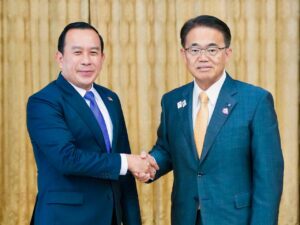 ភ្នំពេញ៖ នារសៀលថ្ងៃទី២៤ ខែកញ្ញា ឆ្នាំ២០២៥ ក្នុងដំណើរទស្សនកិច្ចការងារចូលរួមពិព័រណ៍ទេសចរណ៍ជប៉ុន ២០២៥ និងកិច្ចប្រជុំតុមូលថ្នាក់រដ្ឋមន្ត្រីទេសចរណ៍ ឯកឧត្តម ហួត ហាក់ រដ្ឋមន្ត្រីក្រសួងទេសចរណ៍ និងគណៈប្រតិភូជាន់ខ្ពស់ក្រសួងទេសចរណ៍ និងវិស័យឯកជន បានជួបពិភាក្សាការងារជាមួយឯកឧត្តម Hideaki Ōmura អភិបាលខេត្តអៃឈិ (Aichi Prefecture) អំពីការបង្កើតកិច្ចសហប្រតិបត្តិការទេសចរណ៍ថ្មីៗ បន្ថែមទៀតរវាងប្រទេសកម្ពុជា និងខេត្តអៃឈិ (Aichi Prefecture) នៅសាលាខេត្ត។