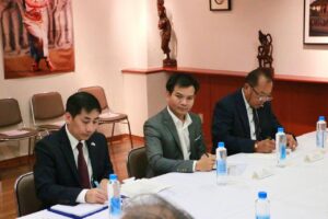 ( ជប៉ុន) នៅស្ថានឯកអគ្គរាជទូតកម្ពុជា នាថ្ងៃទី២៥ ខែកញ្ញា ឆ្នាំ២០២៥ ឯកឧត្តម ទុយ រី ឯកអគ្គរាជទូតកម្ពុជា ប្រចាំប្រទេសជប៉ុន បានអញ្ជើញចូលរួមកិច្ចប្រជុំដែលដឹកនាំដ៏ខ្ពង់ខ្ពស់ដោយ ឯកឧត្តមសាស្រ្តាចារ្យបណ្ឌិតសភាចារ្យ សុក ស៊ីផាន់ណា ទេសរដ្ឋមន្រ្តីទទួលបន្ទុកបេសកកម្មពិសេស (វិស័យពាណិជ្ជកម្ម និងសេដ្ឋកិច្ច) និងជាប្រធានក្រុមការងារសិក្សាអំពីកិច្ចព្រមព្រៀងទូលំទូលាយ និងរីកចម្រើនសម្រាប់ភាពជាដៃគូអន្តរប៉ាស៊ីហ្វិក (CP-TPP) អមដោយឯកឧត្តម មាស គឹមហេង រដ្ឋលេខាធិការក្រសួងការបរទេស និងសហប្រតិបត្តិការអន្តរជាតិ ជាមួយសមាគមកម្ពុជា-ជប៉ុន (JCA) និងតំណាងវិស័យឯកជនជប៉ុនដែលដឹកនាំដោយ ឯកឧត្តម Takahashi Fumiaki ប្រធាន JCA, លោក Takeshi Okami តំណាងក្រុមហ៊ុន Kojima Hoilding Groups និងលោក Hayashi Nobusuke តំណាងក្រុមហ៊ុន ABE Economics ក្នុងឱកាសដែលឯកឧត្តមសាស្ត្រាចារ្យបណ្ឌិតសភាចារ្យ ដឹកនាំគណៈប្រតិភូកម្ពុជា បំពេញការងារនៅប្រទេសជប៉ុន ចាប់ពីថ្ងៃទី២៤ ខែកញ្ញា ដល់ទី២ ខែតុលា ឆ្នាំ២០២៥។